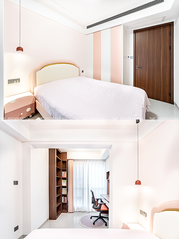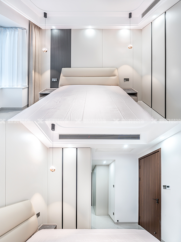 ?? 主臥做套間設(shè)計,衣帽間+床尾衣柜梳妝臺一體設(shè)計,收納空間非常充足。