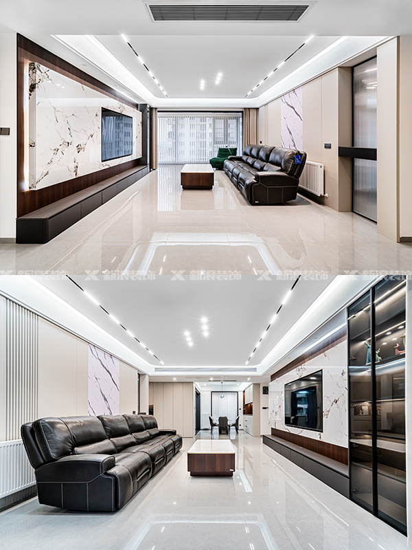 無(wú)主燈設(shè)計(jì)搭配線性燈帶,光影交錯(cuò)間氛圍感拉滿,過(guò)道端景的燈帶更是點(diǎn)睛之筆,瞬間提升空間藝術(shù)感